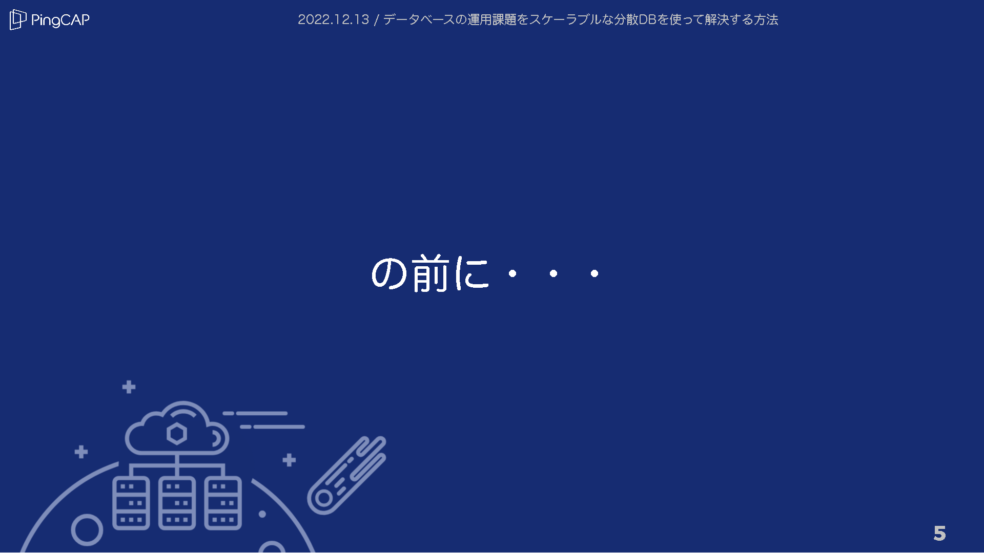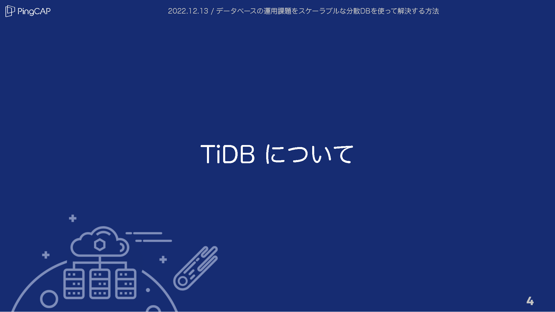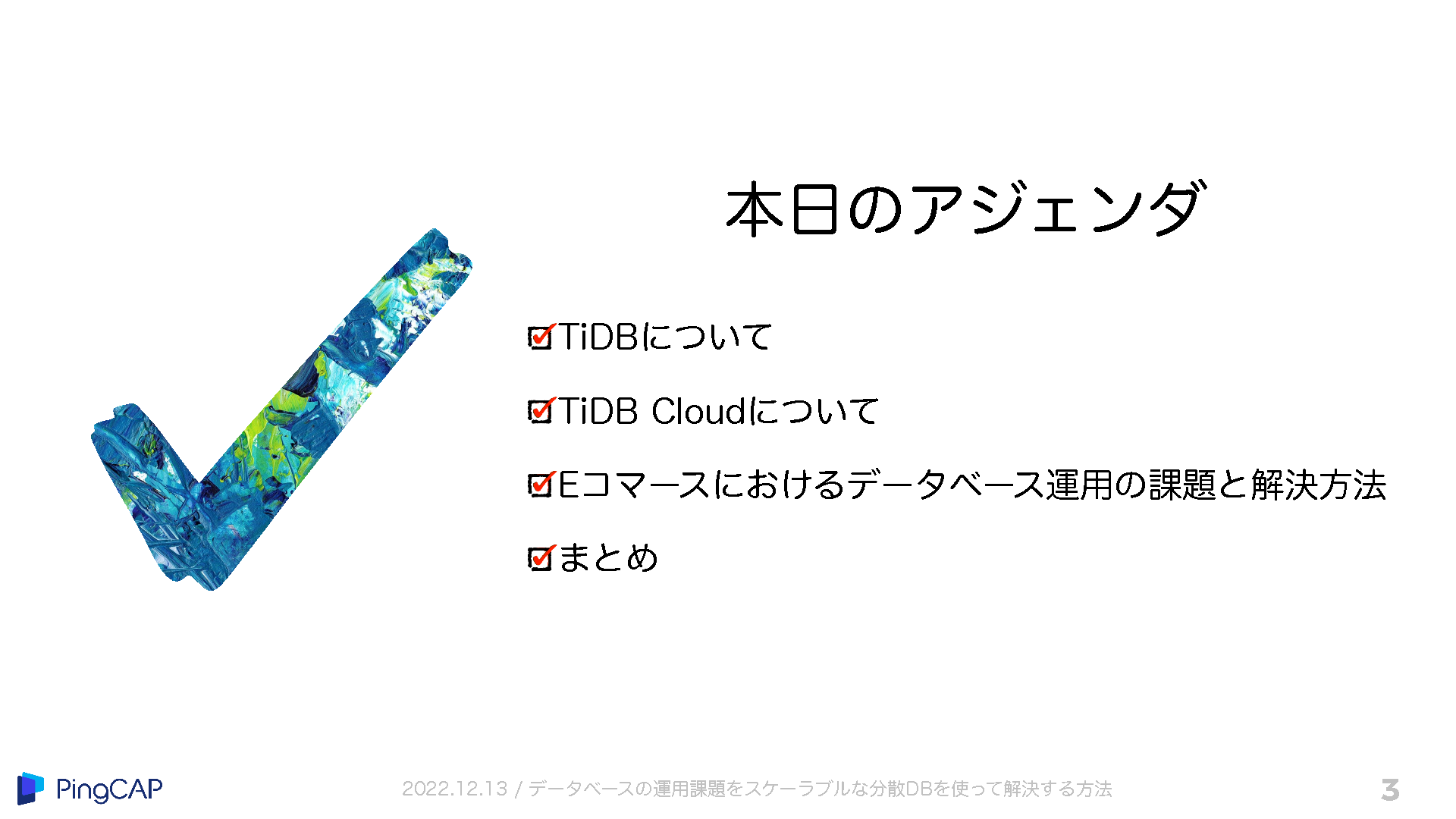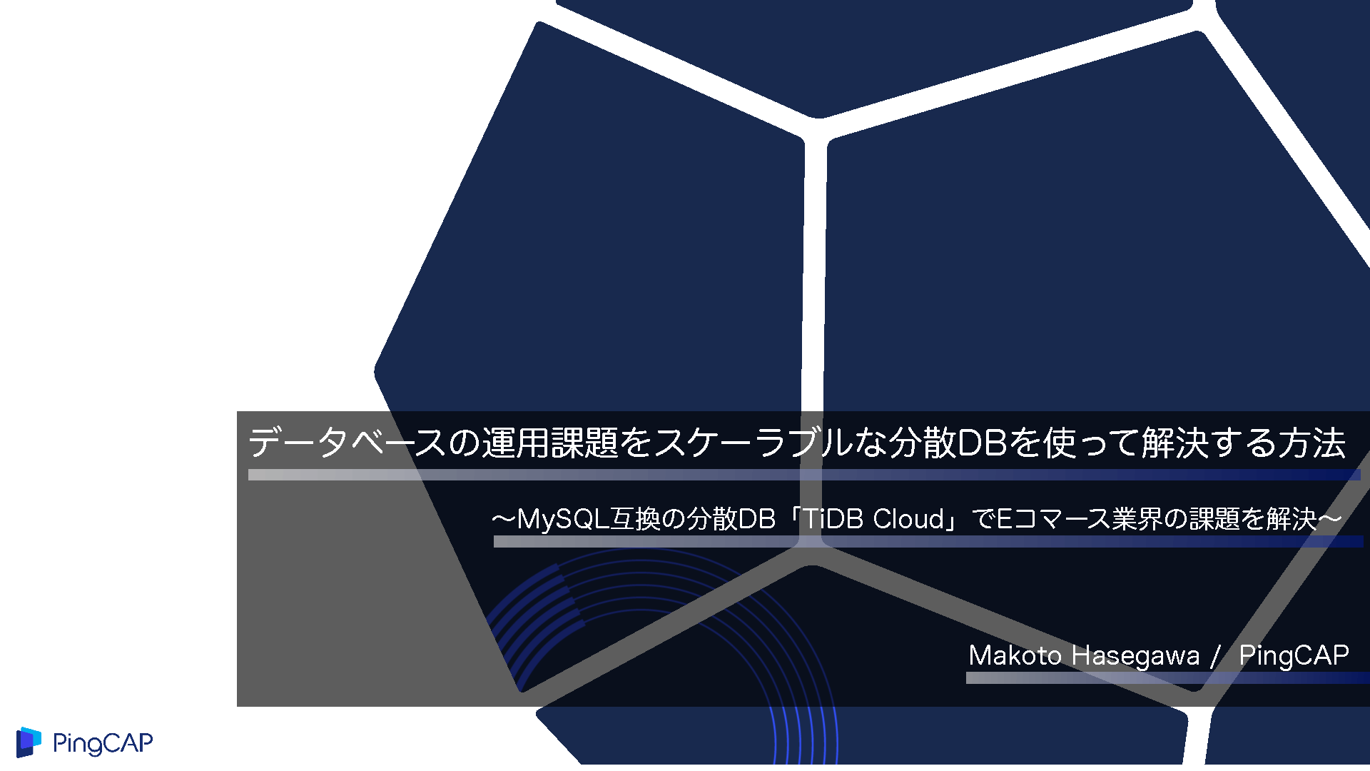 13:05~13:45 データベースの運用課題をスケーラブルな分散DBを使って解決する方法~MySQL互換の分散DB「TiDB Cloud」でEコマース業界の課題を解決〜