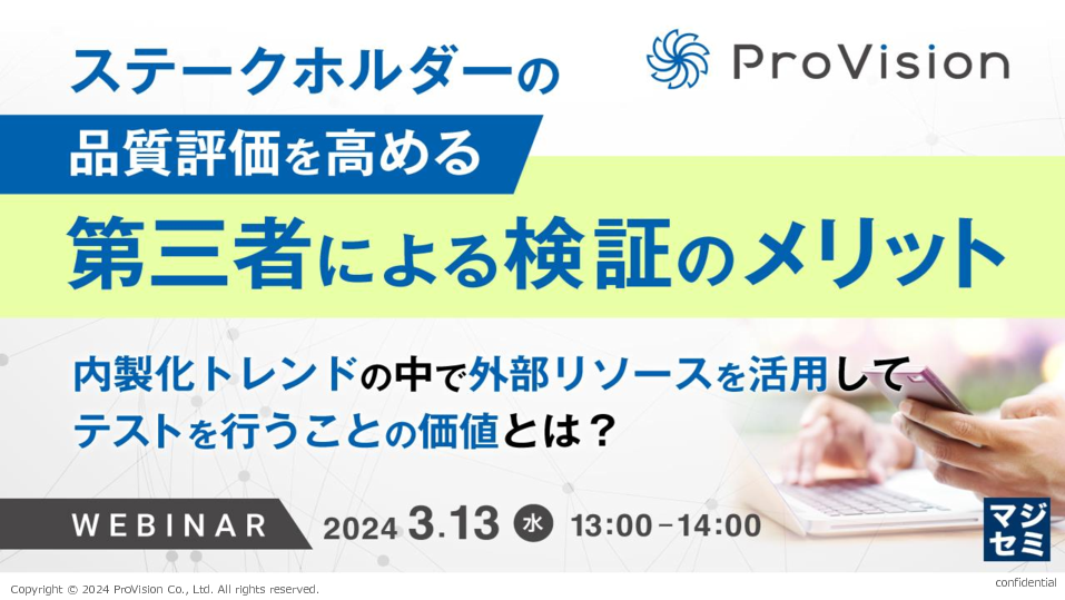 本セミナーでは、テストを第三者で実施することの重要性とメリットについてご説明します。