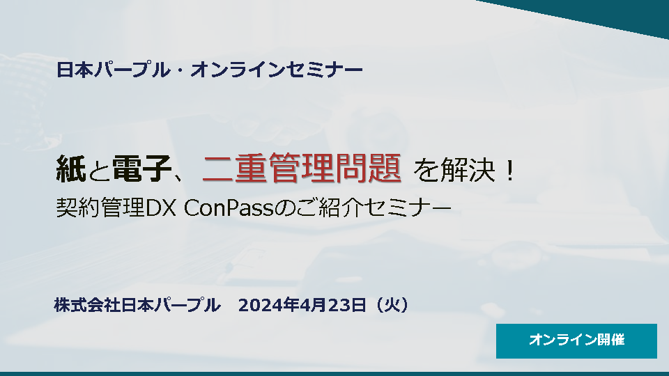 紙と電子、二重管理問題を解決! 契約管理DX ConPassご紹介セミナー