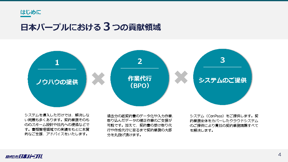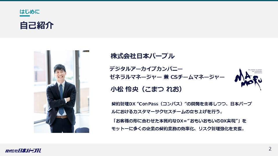 本セミナーでは、「紙と電子、二重管理の課題を解決する」をテーマに弊社が提供している契約管理DX ConPass(コンパス)の具体的なサービス紹介に加え、