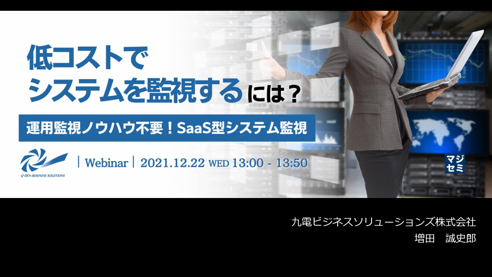 本セミナーでは、中小規模のオンプレミスシステムを低コストで監視するため、弊社のSaaS型システム監視である、リモート監視サービスをご紹介いたします。