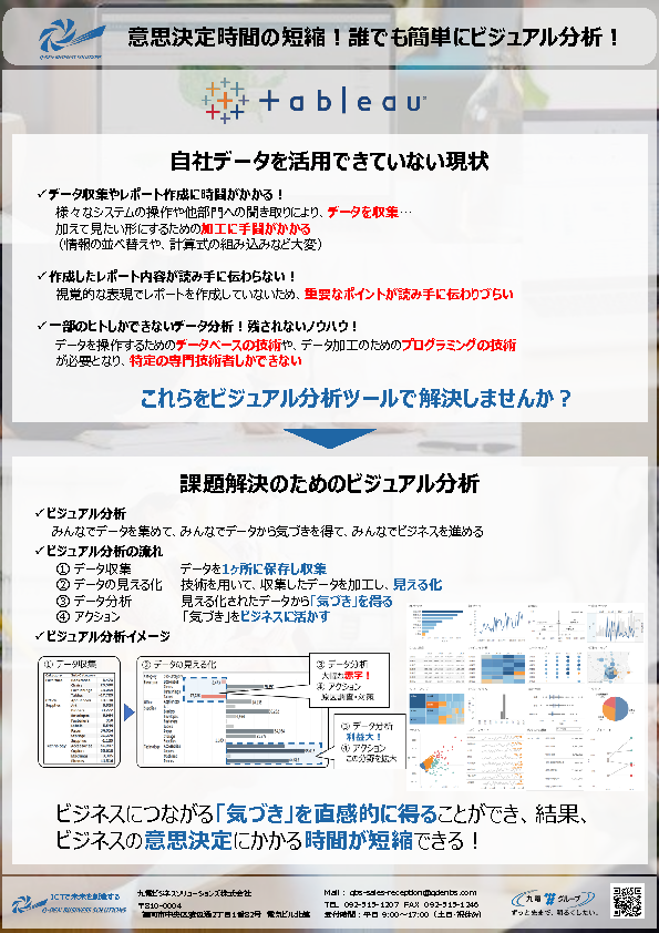 Tableauの導入計画や構築、導入後の活用まで一気通貫してサポートする九電ビジネスソリューションズ社のサービスについてもご紹介しますので、ぜひご参加ください。