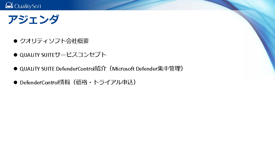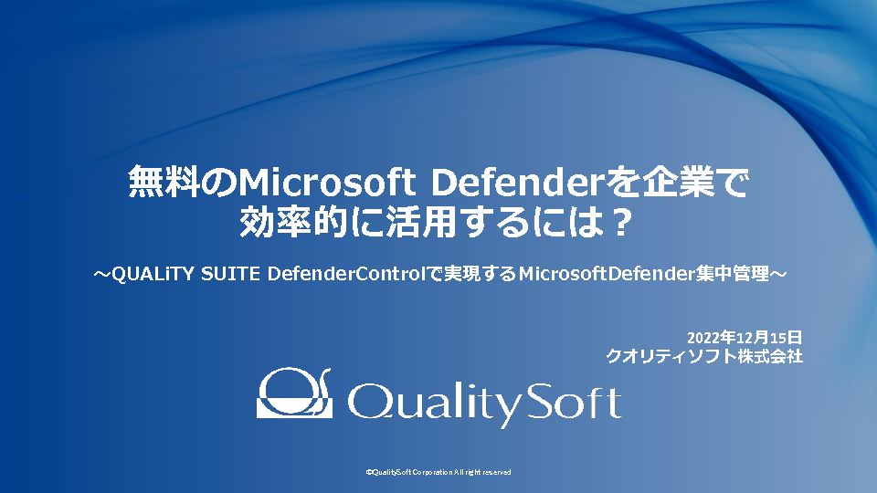 11:20~11:45 第二部:無料のMicrosoft Defenderを企業で効率的に活用するには?~QUALiTY SUITE DefenderControlで実現するMicrosoftDefender集中管理~(クオリティソフト株式会社)