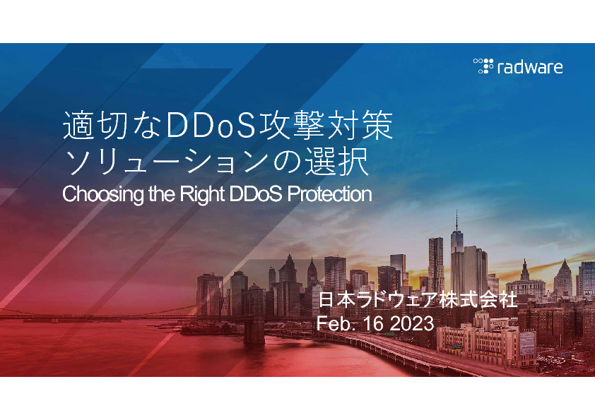 14:05~14:45 企業毎に異なる、最適なDDoS対策とその選び方 ~業界をリードするRadwareが、選択方法ガイドと具体的な対策をご紹介~