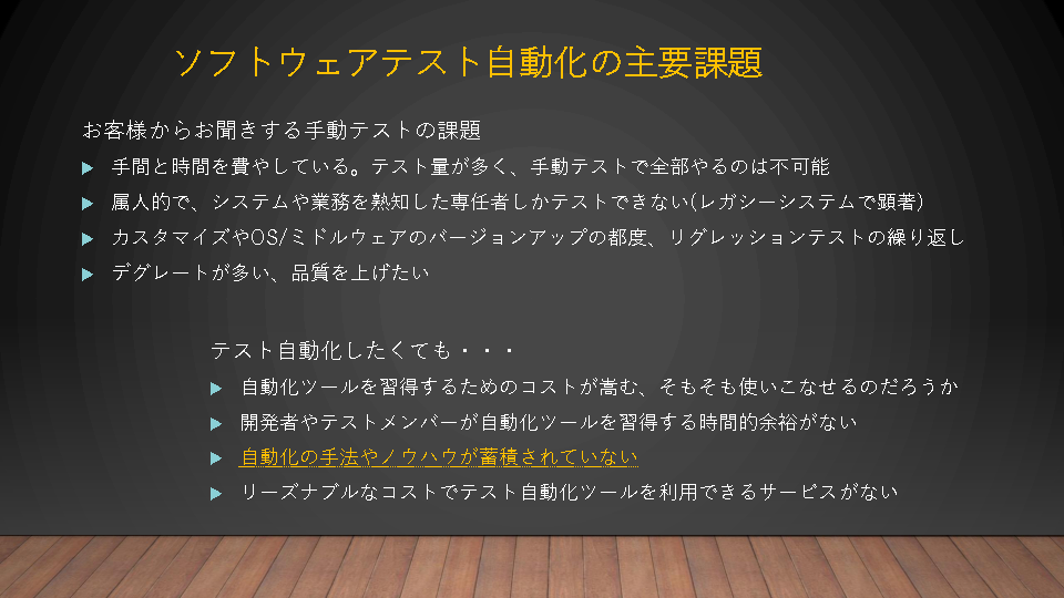 手動で実施しているテストの自動化は多くの企業にとって切実な課題です。