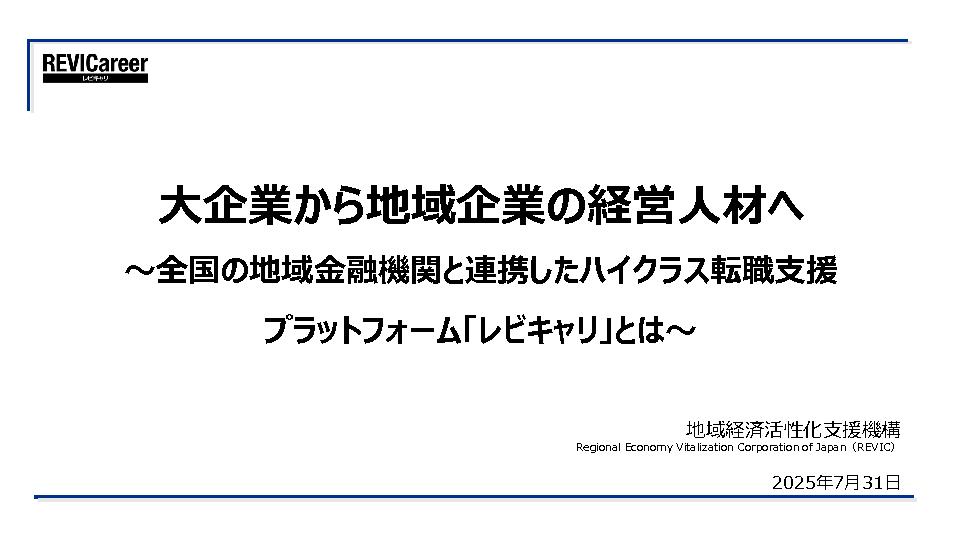 12:15~12:45 大企業から地域の経営人材へ~全国の地域金融機関と連携したハイクラス転職支援プラットフォーム「レビキャリ」とは~