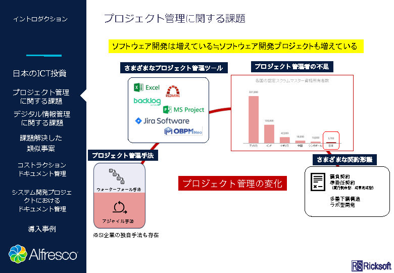 そこで、本セミナーではソースコードと同様に、ドキュメント管理もプロジェクト管理ツールとの連携することで、システム開発のマネジメントを効率化する方法について解説します。