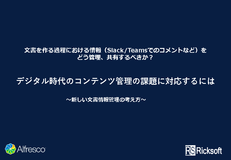 そこで本セミナーでは、文書を作る過程における情報(Slack/Teamsでのコメントなど)を管理、共有する方法を解説いたします。