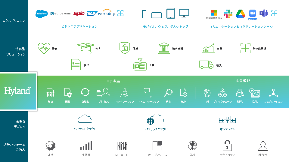 例えばGoogle DriveやBox、Sharepoint、SAP、Salesforce、ServiceNowなどです。