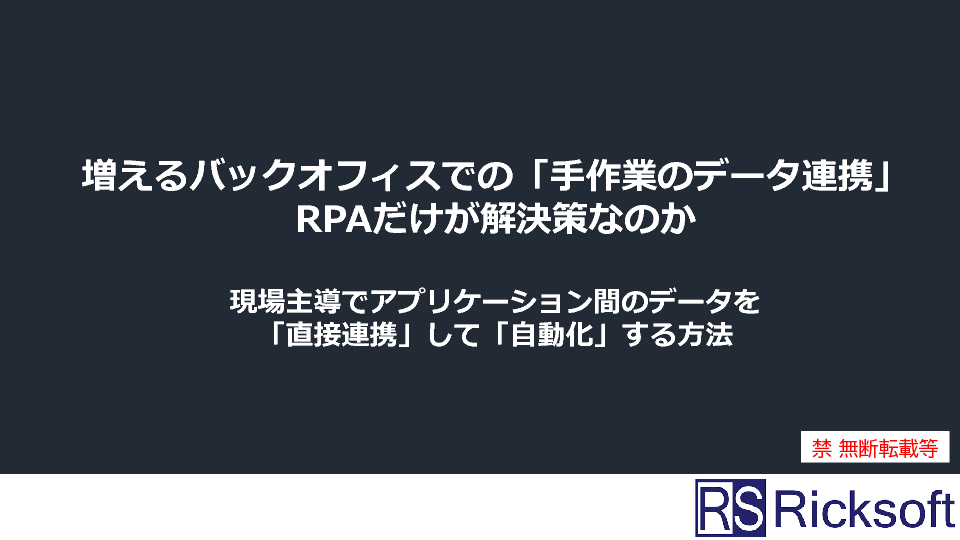 増えるバックオフィスでの「手作業のデータ連携」、RPAだけが解決策なのか ~現場主導でアプリケーション間のデータを「直接連携」して「自動化」する方法~