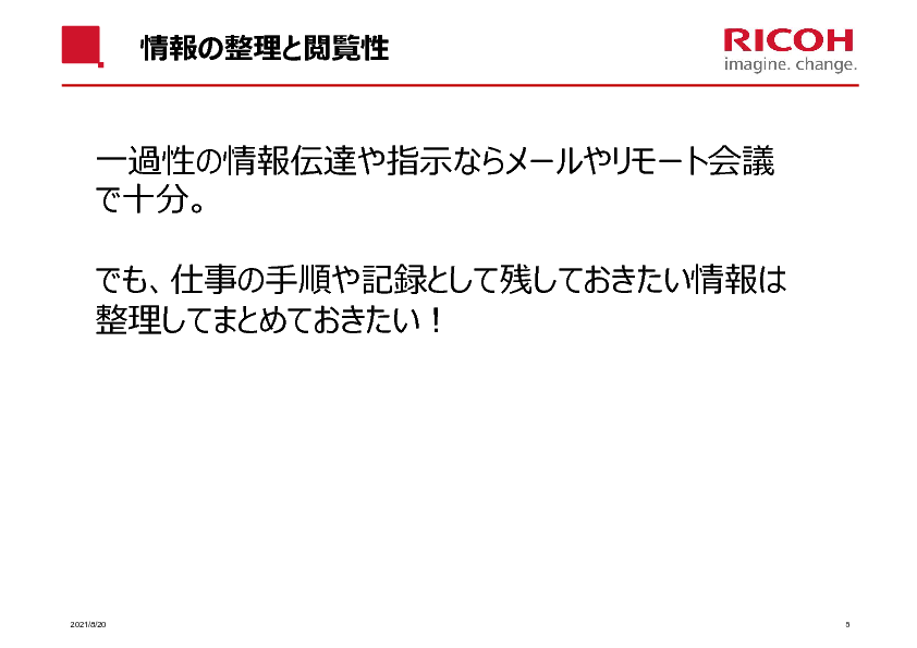 一方で社内情報の共有にExcelを用いていた場合、「ファイルサーバーへのアクセスに時間がかかる」「どのエクセルが最新のものか分かりにくい」などの課題も表面化しています。