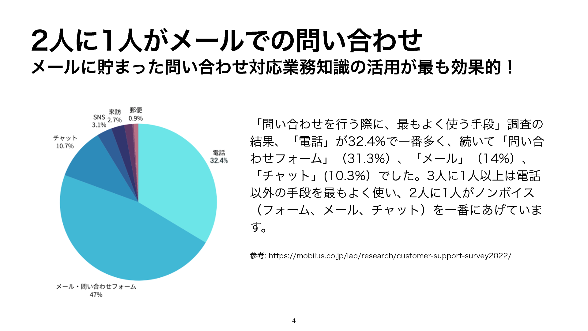 本セミナーでは、メールに蓄積されたナレッジを、問い合わせ対応で活用する方法について解説します。