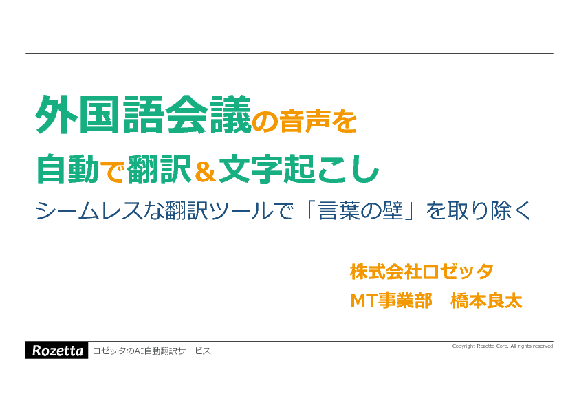 14:05~14:45 外国語会議の音声を自動で翻訳&文字起こし〜シームレスな翻訳ツールで「言葉の壁」を取り除く〜
