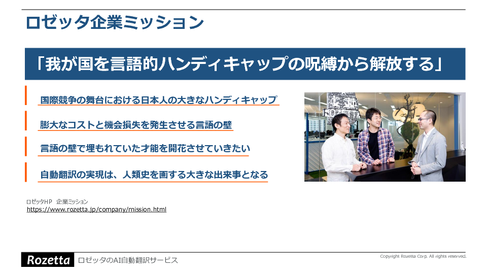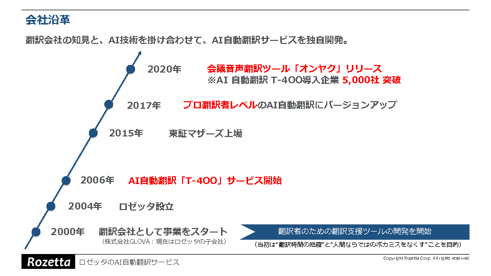 ビッグデータとAIの技術を駆使して外国語文書の自動翻訳を実現し、2000の分野からなる専門分野DBを備えていることから専門用語の翻訳にも強いロゼッタ社のAI自動翻訳ツール「T-4OO」についても紹介する予定です。