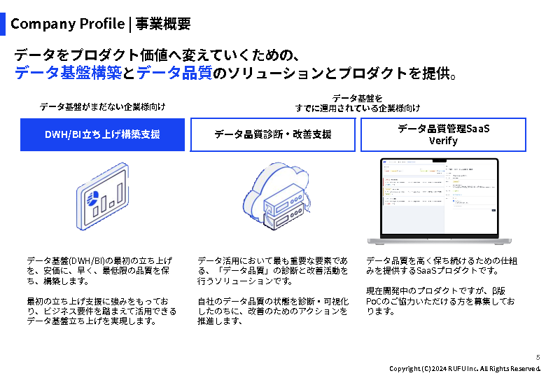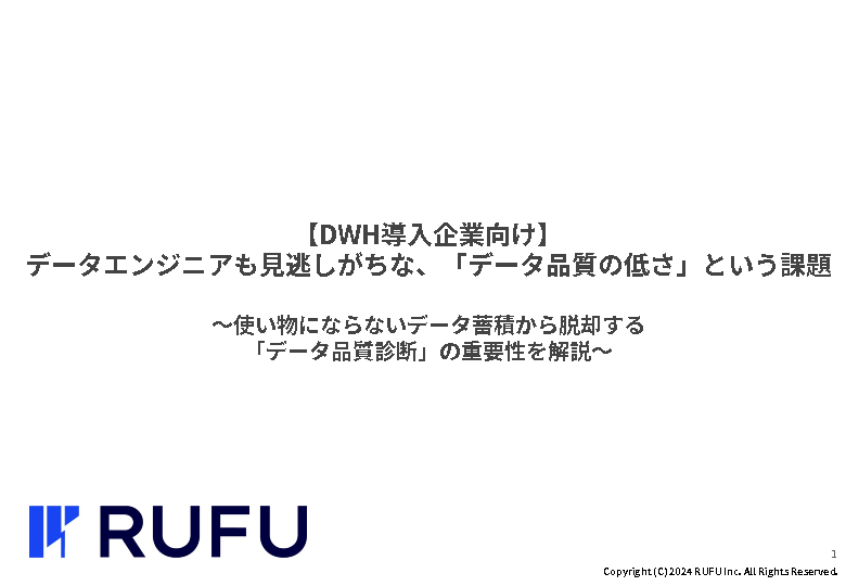 今回のセミナーでは、多くの工数をかけて調査しても把握できないデータ活用における課題要因を解明する、RUFUの「データ品質診断」を紹介します。