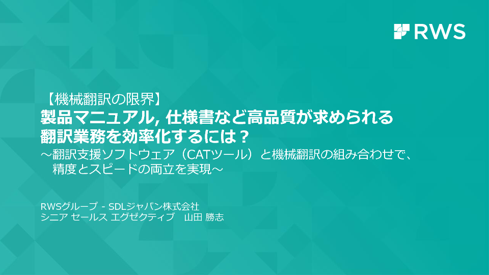 11:05~11:45 【機械翻訳の限界】製品マニュアル, 仕様書など高品質が求められる翻訳業務を効率化するには?〜翻訳支援ソフトウェア(CATツール)と機械翻訳の組み合わせで、精度