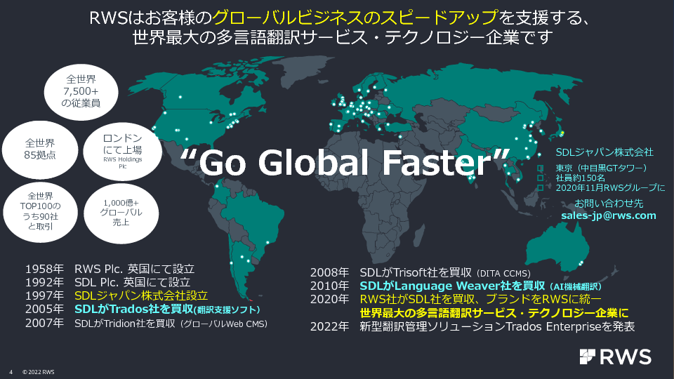 世界で27万人以上の利用者を抱える世界シェアNo.1の翻訳支援ソフトウェア「Trados Studio」と、機械翻訳ソリューション「Language Weaver」を組み合わせた使用例も含め、ご紹介します。