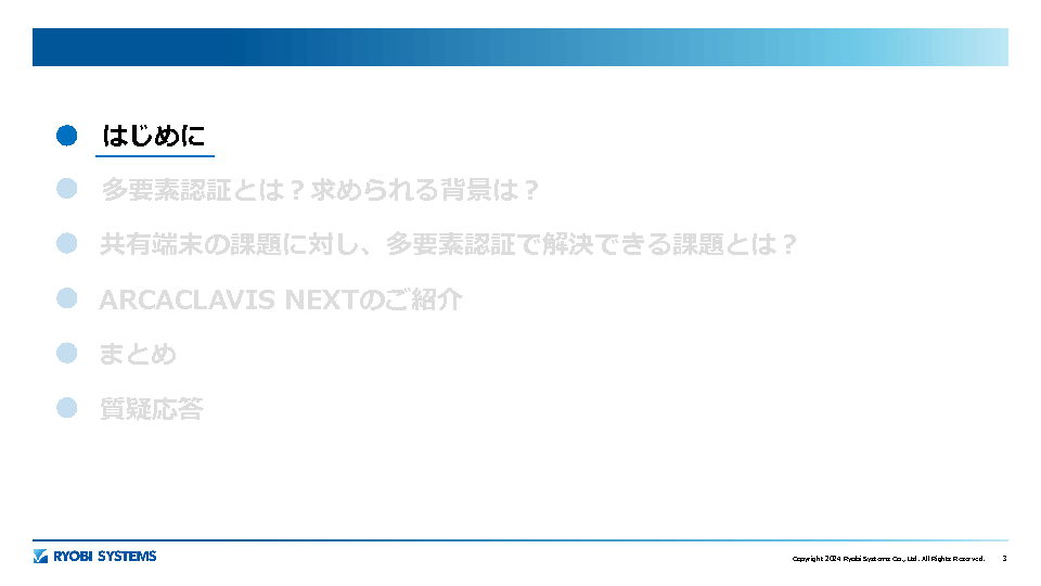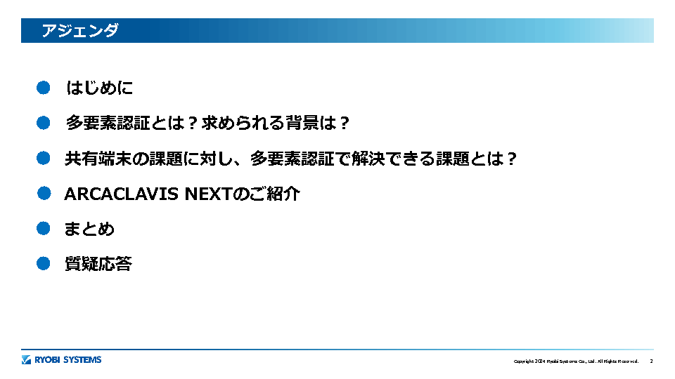 本セミナーでは、共有端末利用におけるセキュリティリスクや課題への対応として、パスワードでの認証に加えて生体認証や社員証、スマートフォンを組み合わせた多要素認証(MFA)により確実な本人確認を実現する「ARCACLAVIS」を導入事例を交えながらご紹介します。
