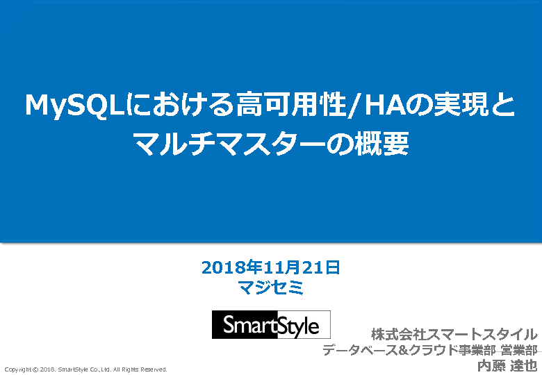 本セミナーでは、MySQLのスペシャリストである株式会社スマートスタイルに依頼し、