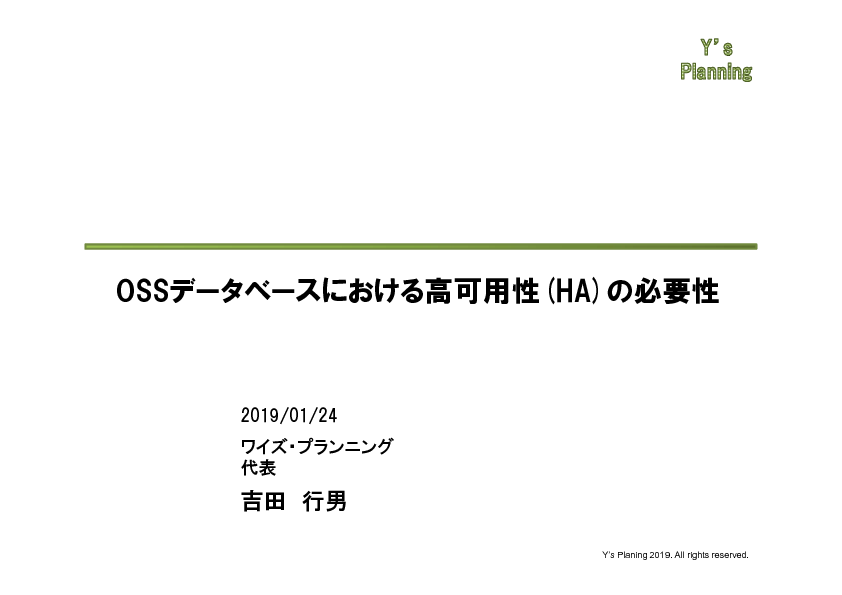 OSSデータベースにおける高可用性/HAの必要性(仮)