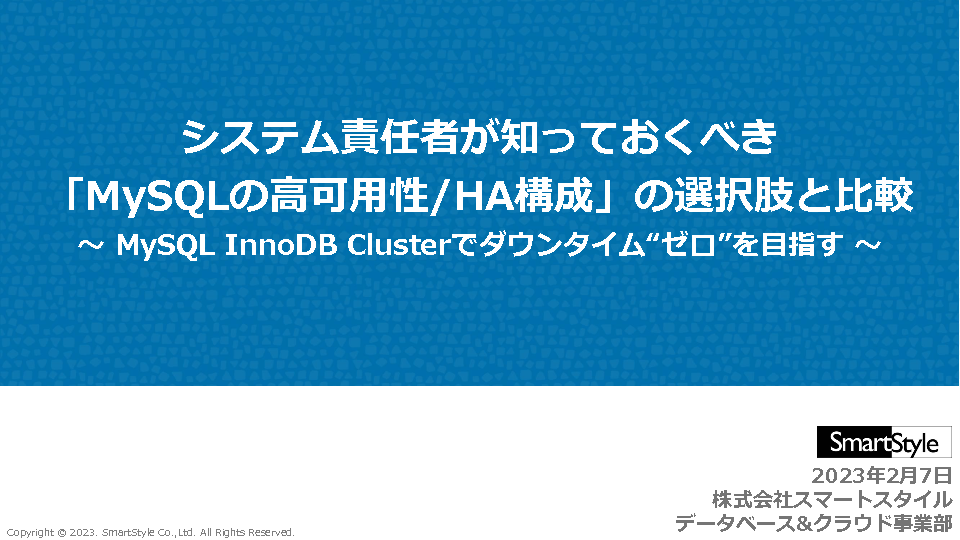 システム責任者が知っておくべき 「MySQLの高可用性/HA構成」 の選択肢と比較 〜MySQL InnoDB Clusterでダウンタイム“ゼロ”を目指す〜