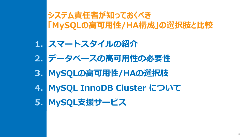 そこで本セミナーでは、高可用性を実現するMySQLの高可用性/HA構成について、どんな選択肢があるのか、その中で何が最適なのか解説します。