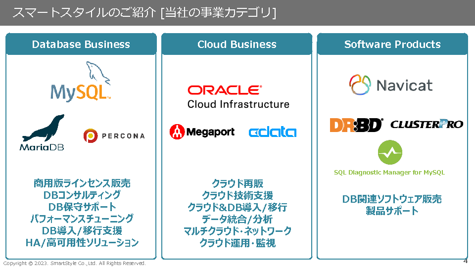 国内で15年以上1000社以上の企業へMySQLに関するコンサルティング&サポートや製品提供を行ってきたスマートスタイル社が、MySQLの高可用性ソリューション「MySQL InnoDB Cluster」 を紹介する予定です。