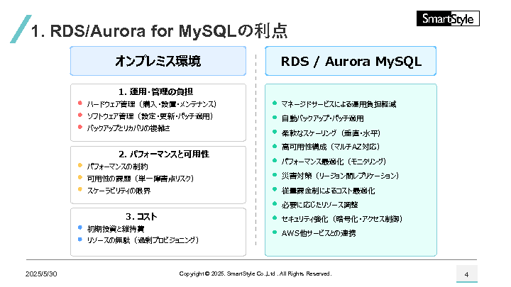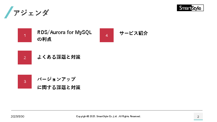 また、本セミナーではバージョンアップに加えて、RDS/Aurora MySQLを運用する上での一般的な課題や対策についても解説します。