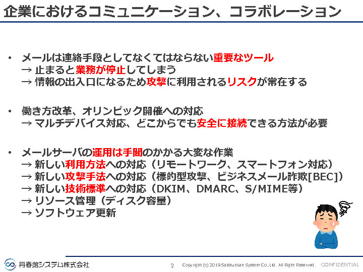 現在オンプレ型からクラウド型のメールサービスへの移行が進みつつある日本企業において、メールセキュリティに関していくつかの課題があります。