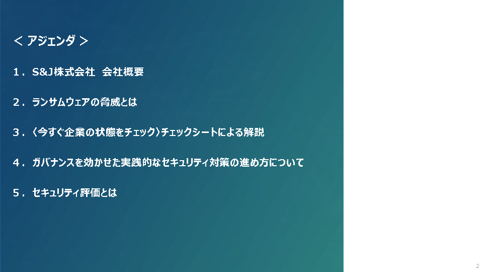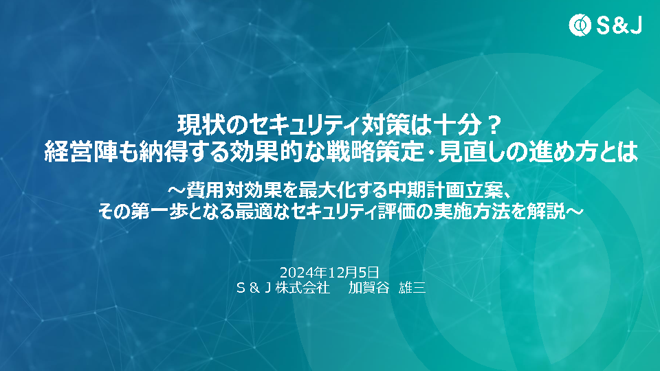 また、セキュリティ対策の現状把握や今後必要なセキュリティ対策を明確化し、中期的なセキュリティ戦略の立案と投資対効果の可視化に役立つ解決策となるセキュリティ評価の実施方法をご紹介。
