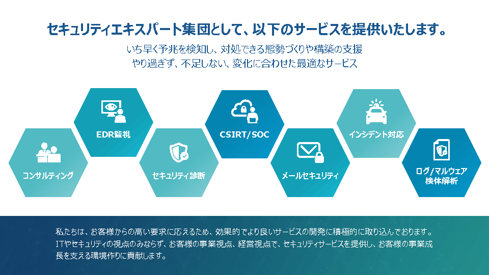 ただし、少人数でセキュリティ運用を実施していたり、組織内でセキュリティの知見が乏しい状況も考えられます。また、外部の専門家を頼りたい場合でも、相談先がすぐに見つからない場合は頭を抱えることになります。