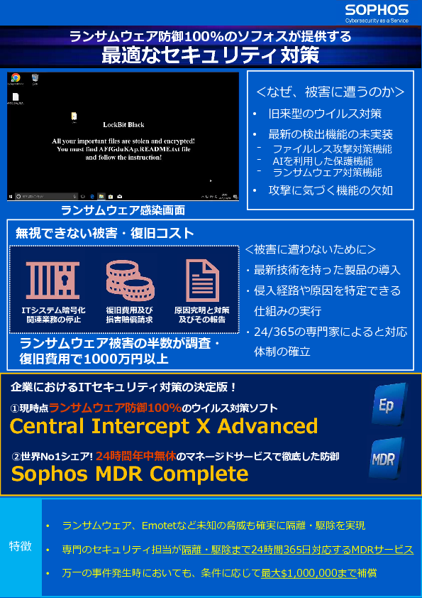 限られた人員と予算の中でEDRなどのエンドポイント対策ツールを有効活用する方法として、専門知識を持つ人材が適切な運用を支援する「MDR(Managed Detection and Response)」サービスをご提案。MDRの必要性を解説するとともに、その最適な選択肢として、導入企業は3万社を超える「Sophos Managed Detection and Response」をご紹介します。