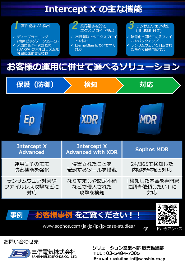 さらに、セキュリティ運用の負荷軽減する方法として、エンドポイントとネットワークの両領域で専門性の高いエンジニアが5年以上にわたる導入支援の実績を持つ、三信電気の「SOPHOS MDR導入支援メニュー」についてもご説明します。MDRの効果的な利用方法を知りたい方は、ぜひご参加ください。