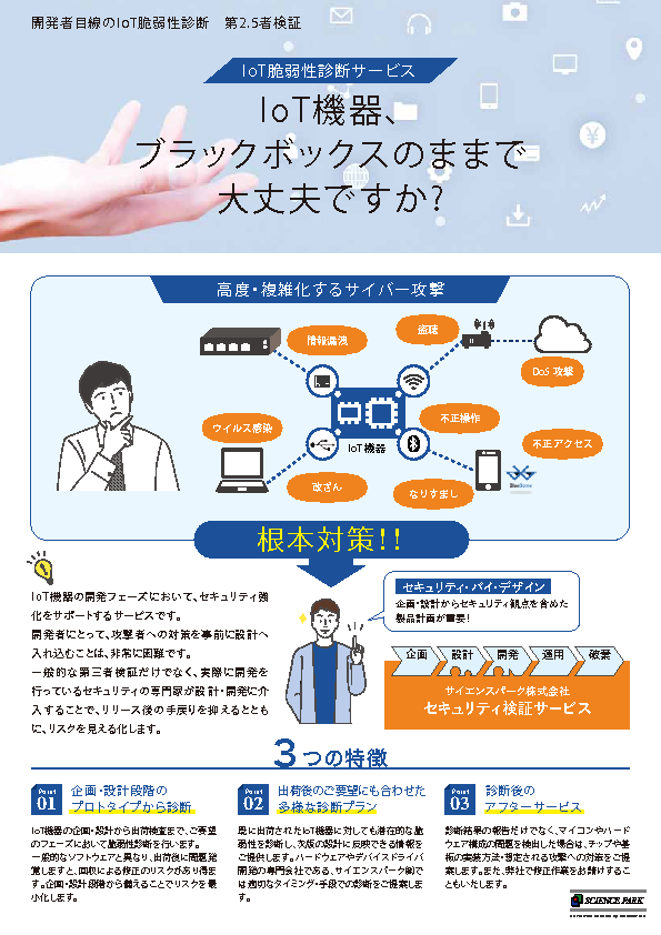 また、IoTデバイスの開発から運用までをトータルでサポートし、セキュリティ脅威からデバイスを守るためのサービスも紹介予定です。