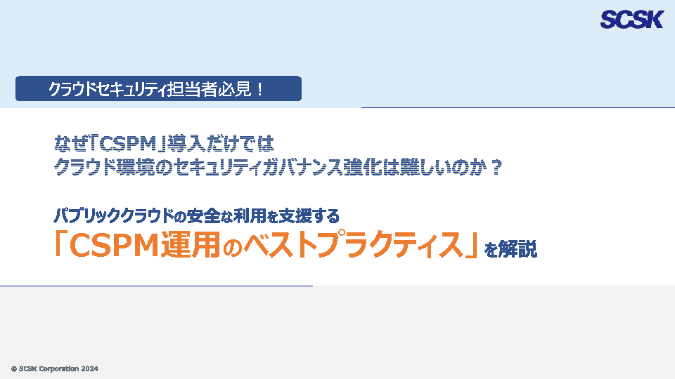 13:05~13:45 なぜ「CSPM」導入だけではクラウド環境のセキュリティガバナンス強化は難しいのか?~パブリッククラウドの安全な利用を支援する「CSPM運用のベストプラクティス」を解説~
