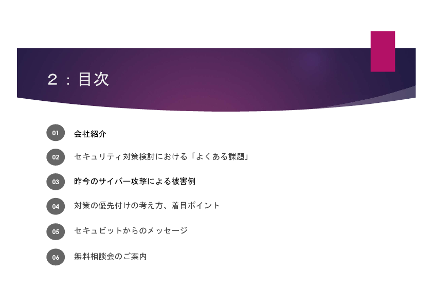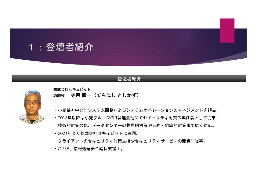 13:05~13:45 セキュリティ対策は「100%を目指すとキリがない。」すぐに取り組むべき対策と、後回しにすべき対策は?~優先度判断で無駄な取り組みを省いて、実践的な対策導入と強い組織づくりを~