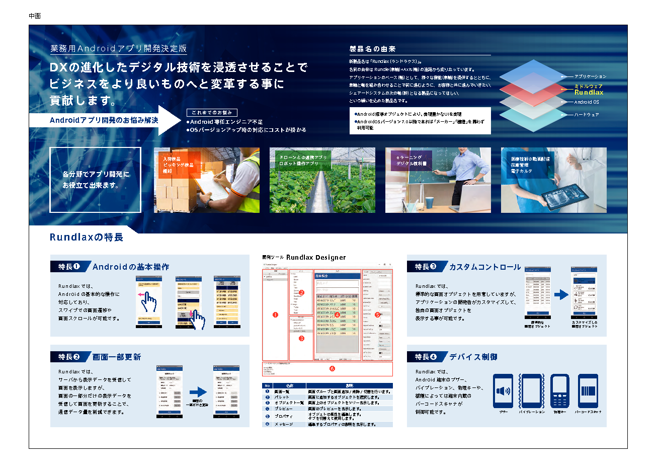デバイス制御で厄介なのは、端末ごとに異なるデバイス機能のために開発が必要になること。業務内容に合わせて必要なデバイス機能をまとめて制御できるプラットフォームがあるとしたら? 経験が十分ではない若手エンジニアでも、デバイスドライバ開発に手間を取られず、使用者の目に触れるUIやデザインに十分な時間を当てることができるのではないでしょうか。