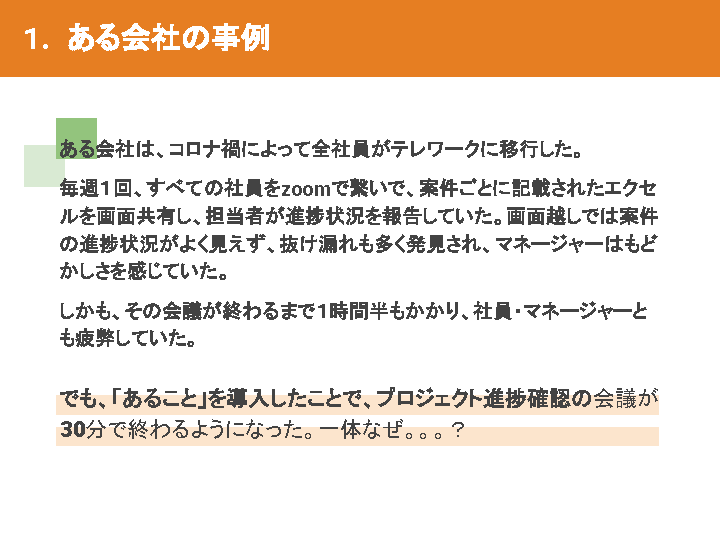 ・オンラインだと、「伝えたはず」なのに伝わっていないケースが多い(オフラインだと、表情などでわかる)