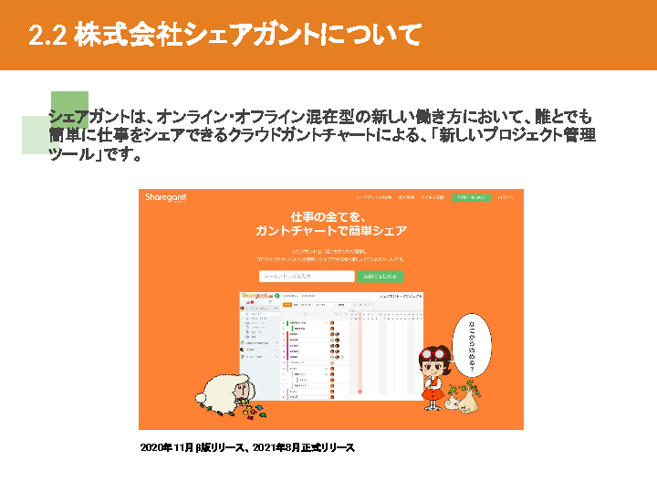 また、無料で使えるクラウド版ガントチャート「シェアガント」をご紹介します。
