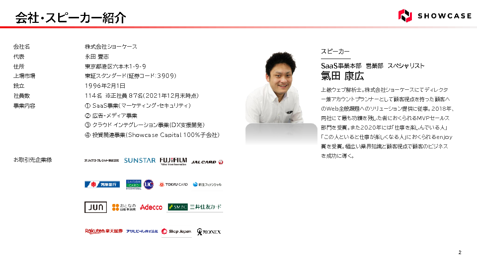 ショーケースが提供する「カンタンeKYC / ProTech ID Checker」の製品紹介、導入事例、製品デモも合わせて行います。