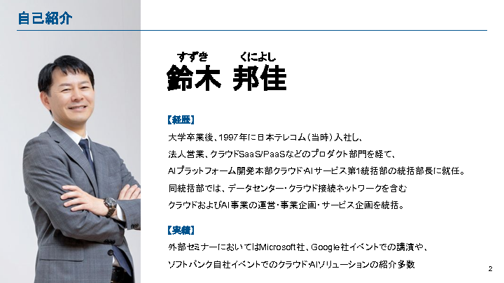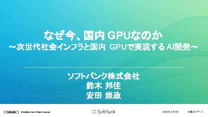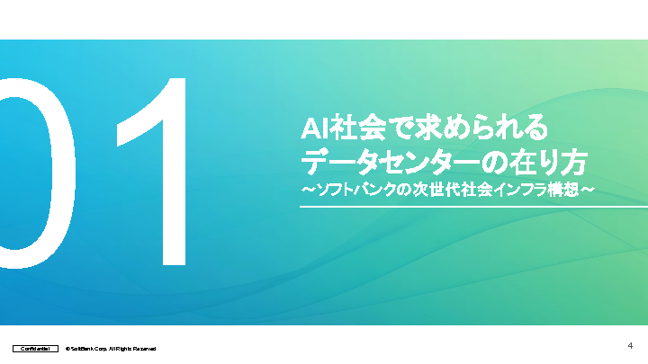 本セミナーでは、まずソフトバンクが描く次世代社会インフラ構想を通じて、AI社会の進展により求められる計算基盤・データセンターの在り方を解説します。