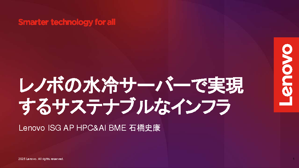 本セミナーでは、Lenovoの最新水冷サーバーと従量課金型インフラサービス「TruScale」による次世代インフラ戦略をご紹介します。Lenovoの水冷技術は、産業廃棄物を排出しない独自設計を採用し、環境負荷を抑えながら高効率な冷却を実現します。また、TruScaleを活用することで、IaaSのような柔軟性を維持しつつ、長期的なコスト最適化が可能になります。生成AIやHPC環境の安定稼働をサポートするためのソリューションを紹介します。