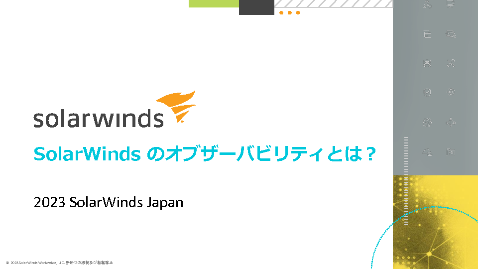 本セミナーでは、SolarWinds社と10年以上のパートナーシップを持つジュピターテクノロジーから、HCOの特徴や強み、そして実際のお客様事例などをご紹介いただきます。複雑なITシステムの管理にお悩みの方はぜひご参加ください。