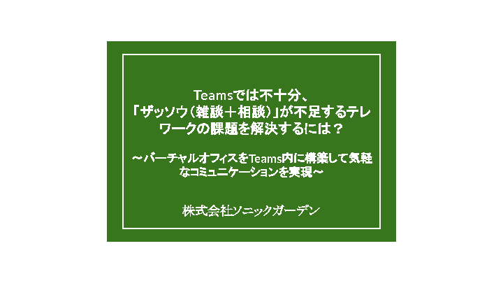 Teamsでは不十分、「ザッソウ(雑談+相談)」が不足するテレワークの課題を解決するには? 〜バーチャルオフィスをTeams内に構築して気軽なコミュニケーションを実現〜