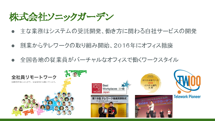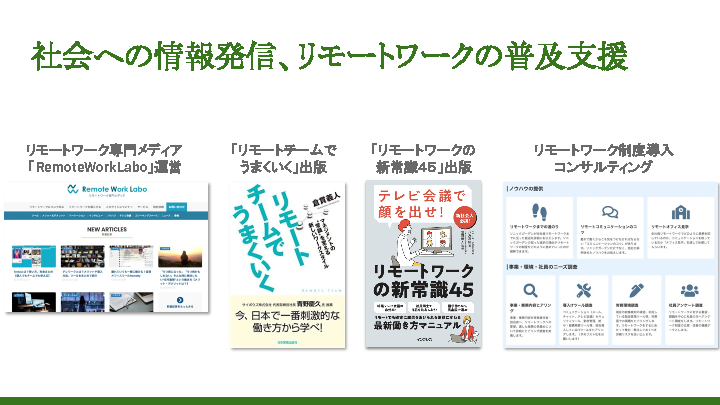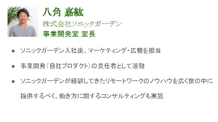 在宅勤務が普及するきっかけとなったコロナ禍よりも以前から全社員テレワークを実施しており、専門メディアや書籍出版による情報発信、導入コンサルティングなども行っているソニックガーデン社が提供する、Teams専用の仮想オフィス「Remotty for Teams」についても紹介します。