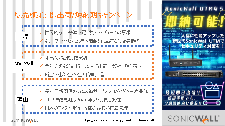 本セミナーはソニックウォールの販売パートナー向けのセミナーです。