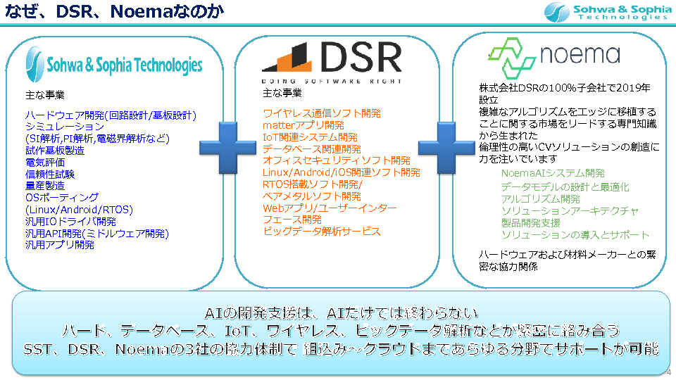 Sohwa & Sophia Technologies(以下SST)社は、AI技術パートナーのDSR社(ブランド名:noema)と提携しました。