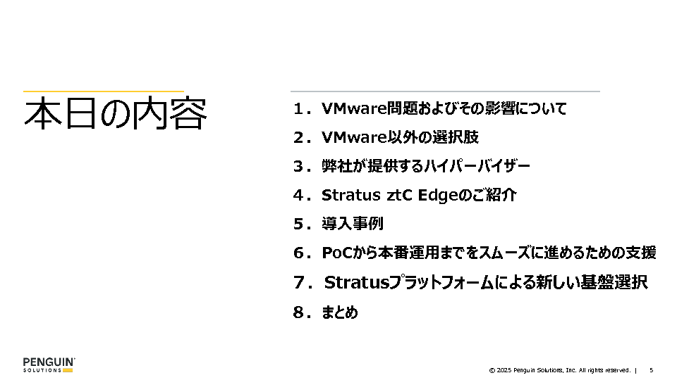 新たなライセンス体系への移行、製品ラインナップの統合、OEMライセンスの提供終了など、従来の運用を継続するには多くの課題が浮上し、ライセンスコストの増加も避けられない状況です。そのため、今、多くの企業がVMwareに依存しない仮想化基盤への移行を模索しています。