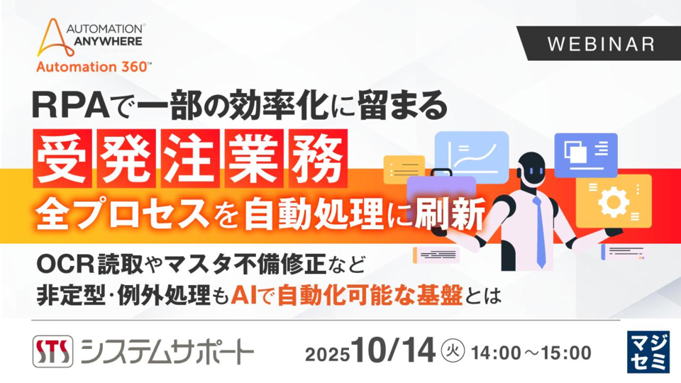 14:05~14:45 RPAで一部の効率化に留まる受発注業務、全プロセスを自動処理に刷新 〜OCR読取やマスタ不備修正など非定型・例外処理もAIで自動化可能な基盤とは〜