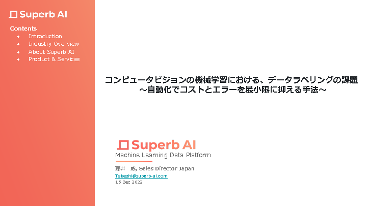 そうした、データラベリング作業の課題を解決できるのが、「Superb AI」です。
